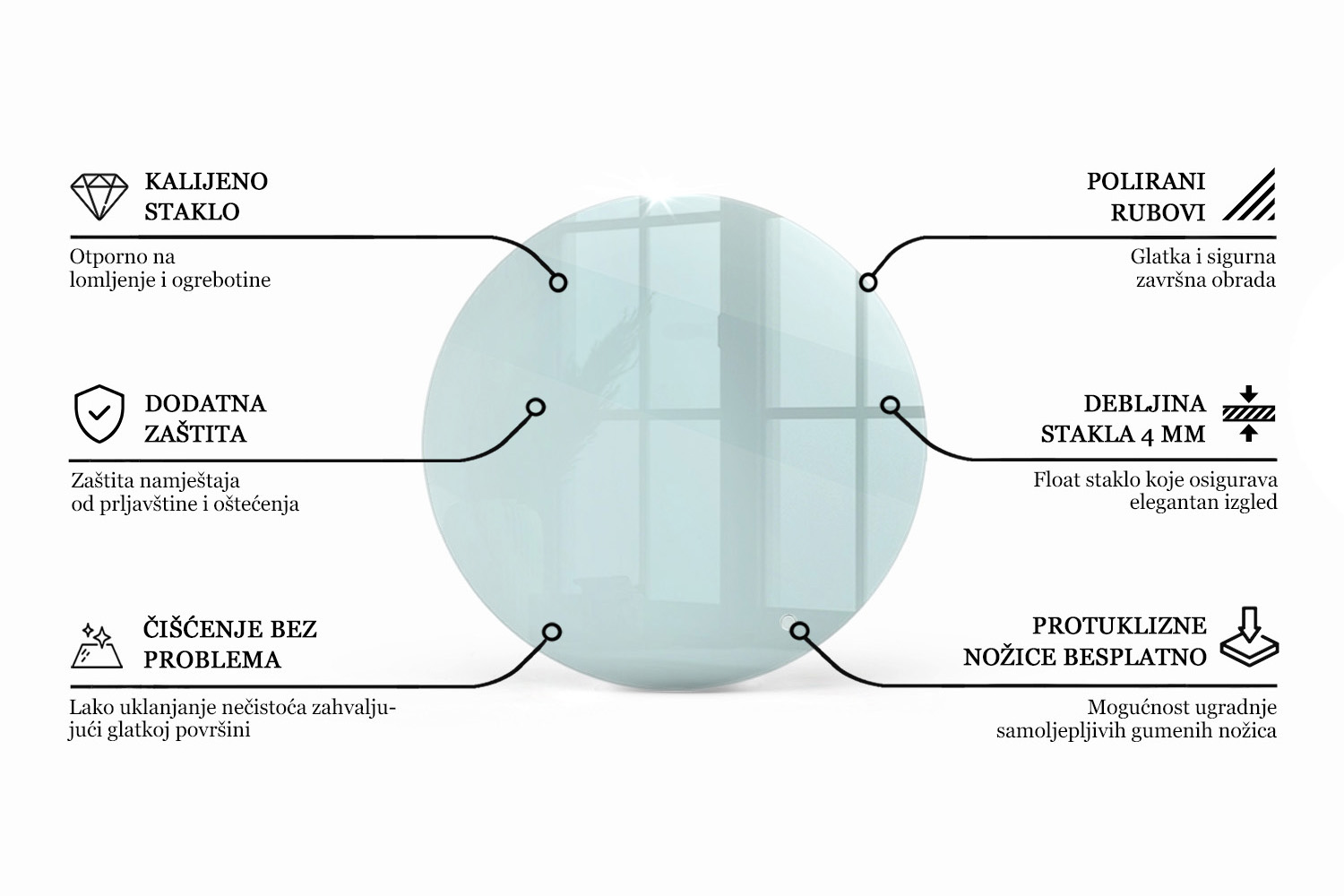 - Okrugla ploča za stol prozirna