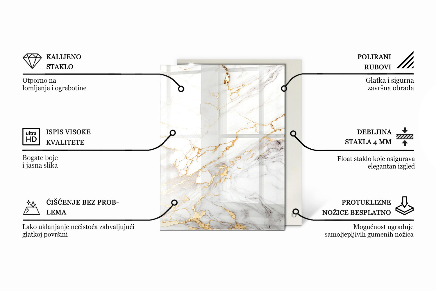 Unesite jedinstveni naglasak u svoj interijer i promijenite izgled stola uz pomoć staklene ploče za stol s motivom Motiv teksture kamena. Ovo nije samo funkcionalni dio namještaja – to je pravi ukras koji privlači poglede i prostoru daje moderan, a ujedno i elegantan karakter. Pravokutna ploča za stol osigurava savršeno slaganje s mnogim vrstama okvira, od klasičnih do onih dizajnerskih. Zahvaljujući profinjenoj završnoj obradi, ploča suptilno reflektira svjetlost, unoseći u prostoriju lakoću, prostranost i notu luksuza. Izvrstan je izbor za ljude koji žele svom interijeru dati unikatan stil – bez kompromisa između estetike i kvalitete.